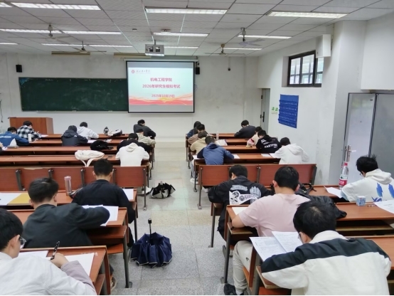 考场上,考生全程遵循真实考研规范,统一提交手机,严格遵守考场纪律;答题过程中,全体考生保持高度专注,以认真的态度完成整场模拟考试,充分借助此次演练检验知识掌握情况、适配考试节奏,展现出机电工程考研学子严谨的备考态度与良好的应考素养。