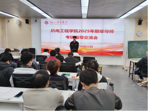 为充分发挥朋辈导师榜样引领作用,助力在校生明晰考研方向、掌握备考技巧,10月22日,机电工程学院在J2-208举办2025年朋辈导师考研指导交流会。本次交流会邀请了学院2025届毕业生中第一志愿考取本院研究生的三位学长进行经验分享。