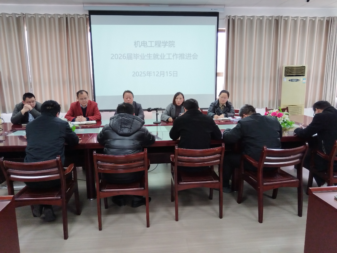 12月15日下午,机电工程学院在K1-414会议室召开2026届毕业生就业工作推进会,学院领导班子及2026届毕业班班主任参加会议。