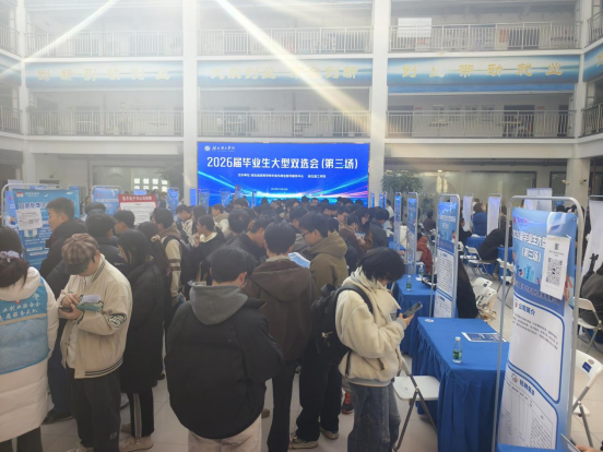 12月26日,湖北理工学院2026届毕业生大型双选会(第三场)在创业大楼一楼盛大启幕。“星光导航”辅导员工作室在双选会中主动担当作为,以专业、细致、温暖的服务全程主导就业帮扶工作,为毕业生冲刺高质量就业保驾护航。