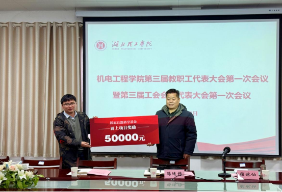 会议伊始,为表彰学院重大标志性成果产出,副书记冯运仿教授为董博闻博士颁发国家自然科学基金面上项目奖励。冯书记对机电工程学院过去一年的工作成绩予以表扬与肯定,并着重从以下三个方面总结了学院的工作成效:一是党建引领很有力量,二是在学科专业建设、科研工作中大有收获,三是人才培养质量稳步提升,专业内涵建设得到持续深化。他希望机电工程学院能够再接再厉,再创佳绩,秉持“敢为人先、奋勇争先”的精气神,勇当“排头兵”“先锋队”“主力军”。他要求领导班子要争当“领头雁”“铺路石”“勤务兵”,带领学院全体教职工锐意进取、共同创业。教师要争做“四有”好老师,当好“四个引路人”。学院要强化民主管理、民主监督,充分保障师生权益,让更多师生参与到学校发展工作当中,更好地推动机电工程学院更高质量发展。最后预祝机电工程学院发展得更好,也提前祝全体教职工马年快乐!