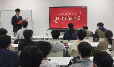 2026年4月22日,机电工程学院在毓成学生公寓求实“一站式”学生社区,顺利举办“诚信自强之星”主题演讲比赛。学院党总支部副书记熊泽敏、辅导员代表及40余名学生参加了此次活动。