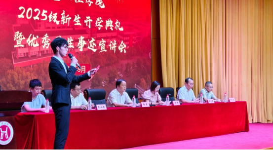 9月29日下午,机电工程学院2025级新生开学典礼暨优秀学生代表事迹宣讲会于豁度楼208顺利召开。学院全体领导班子、2025级新生班主任、全体辅导员及2025级新生共计300余人参与本次活动,活动由陈昊蓝主持。
